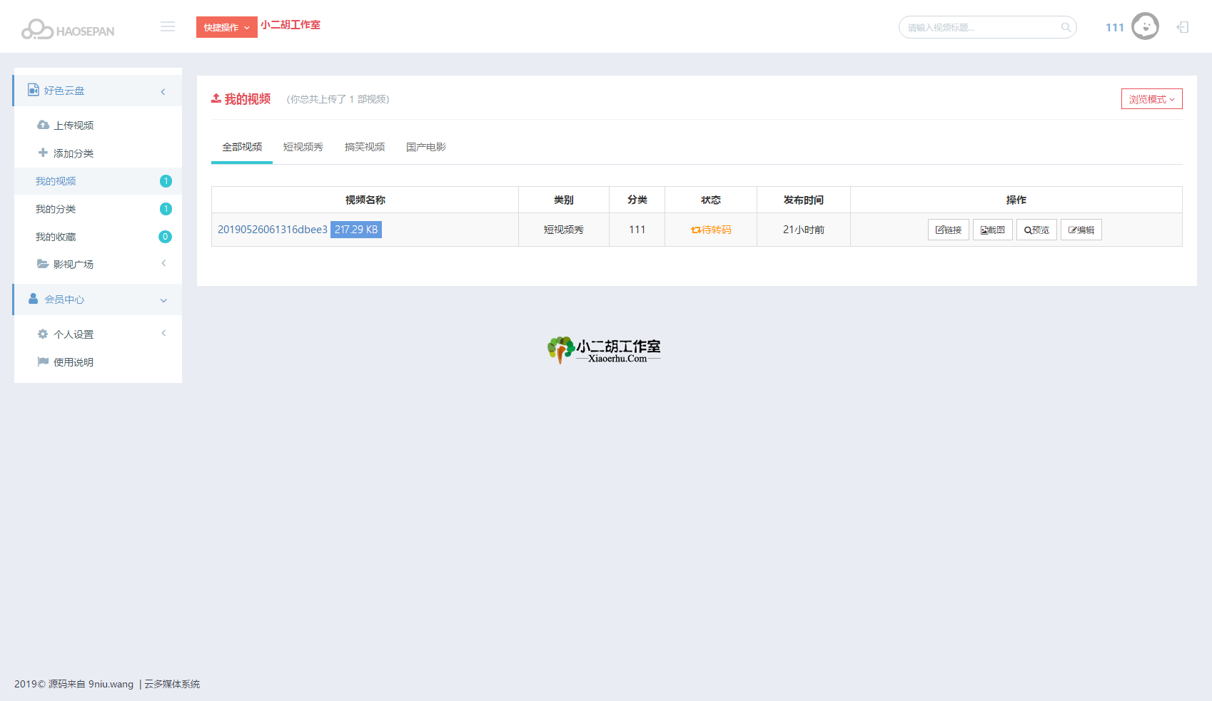 站长评测:搭建、上传均正常,但是上传完成后,无法自动转码,暂时没发现是哪里问题,有兴趣的朋友可以下载研究!