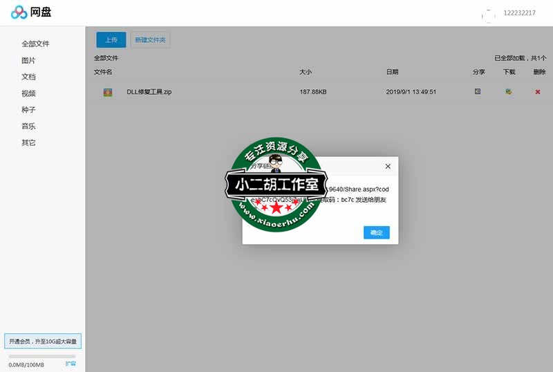 分享:用户分享文件链接会生成提取码,其它用户进入该链接需输入提取码比对,正确的进入下载,错误的提取码不允许下载