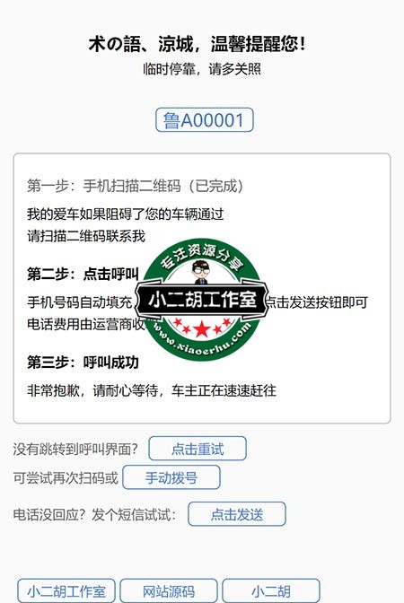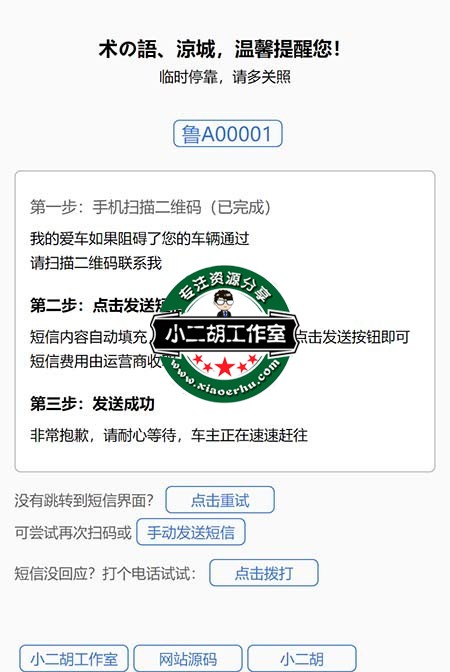 HTML > 临时停车自动拨号/短信通知HTML源码