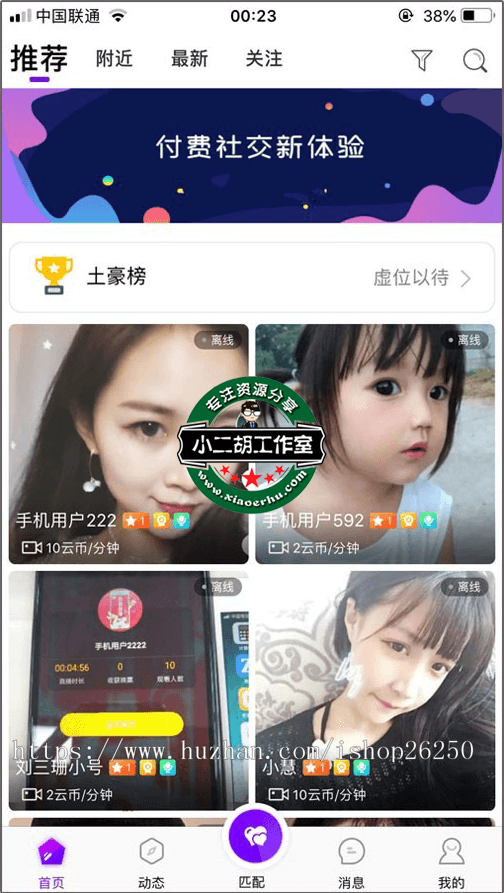 匹配聊天:用户可选择与主播的通话类型、聊天价格区间,匹配相应主播发起聊天请求。